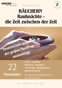 Die Kraft der Kräuter neu entdecken: Auf dem Wieserhof zeigen Workshops, wie Heilpflanzen als Tee, Öl oder beim Räuchern genutzt werden können, um Körper und Geist auf natürliche Weise zu stärken.